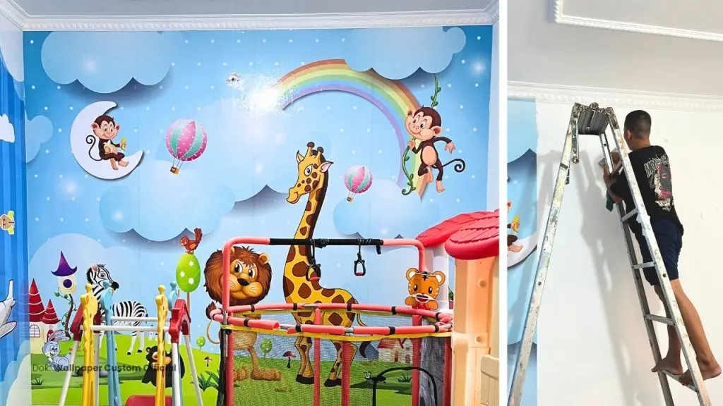 Proses pemasangan wallpaper custom di TK Darul Musthofa dimulai dengan survei lokasi dan pengukuran dinding secara menyeluruh. Setelah desain disetujui, tim teknis langsung melakukan pemasangan dengan teknik profesional yang memastikan hasil rapi, tahan lama, dan tidak merusak struktur dinding. Proses ini dilakukan dengan cepat dan efisien agar tidak mengganggu aktivitas belajar mengajar yang sedang berjalan.